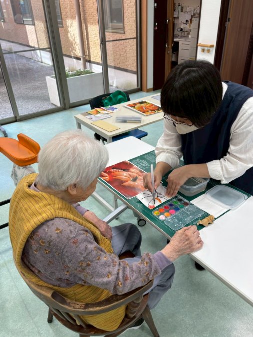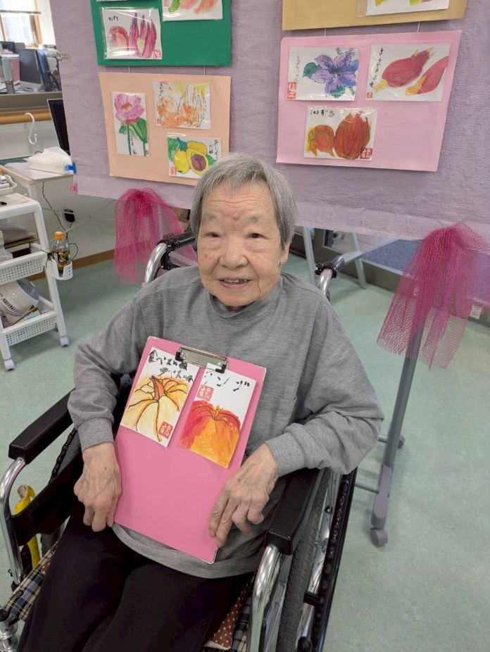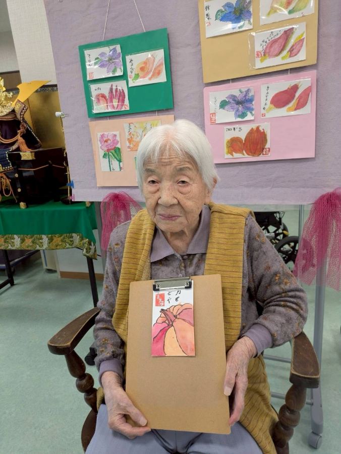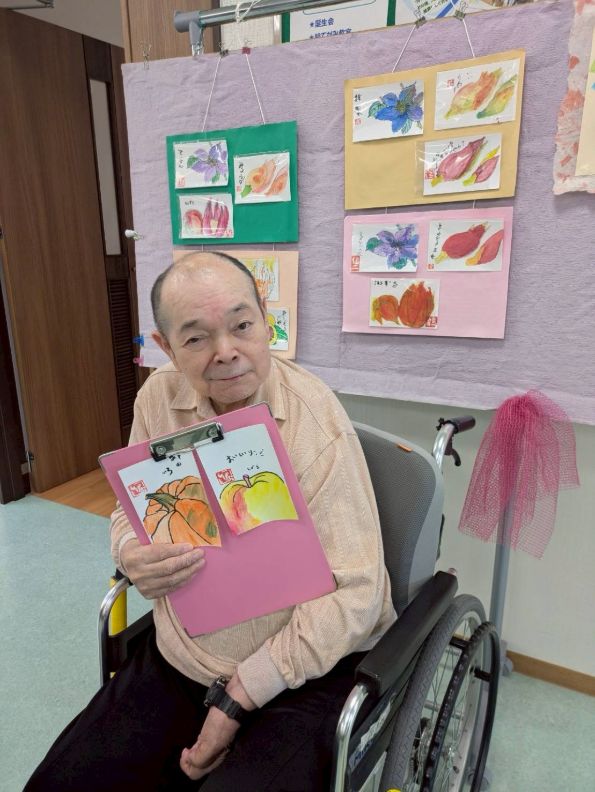 りんご、かぼちゃ、桔梗の花の絵柄に