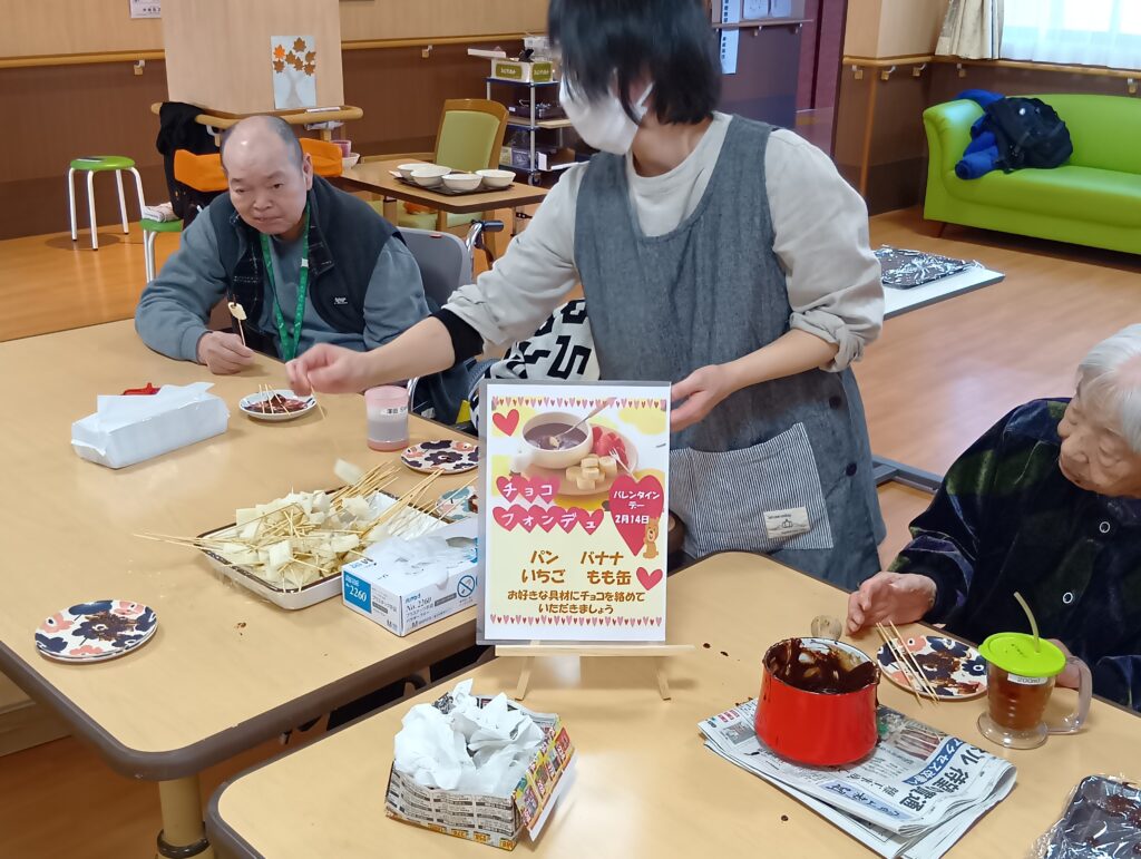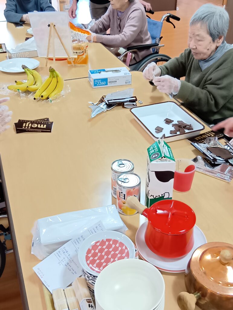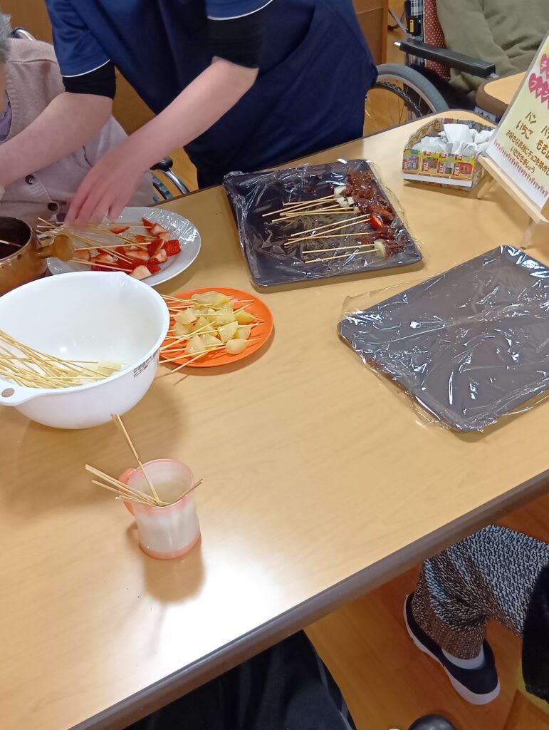 2026.2.13 バレンタインのチョコフォンデュ作り 2026年2月13日 最終更新日時 : 2026年2月27日 yusaki 入所者様にお手伝いしていたただき、イチゴやバナナ等を一口大にカットし、 溶かしチョコをコーティング。 楽しみながら美味しいチョコスイーツをいただきました♪ 260213140344877 260213140433990 260213140532019 260213145642391 260213151005047
